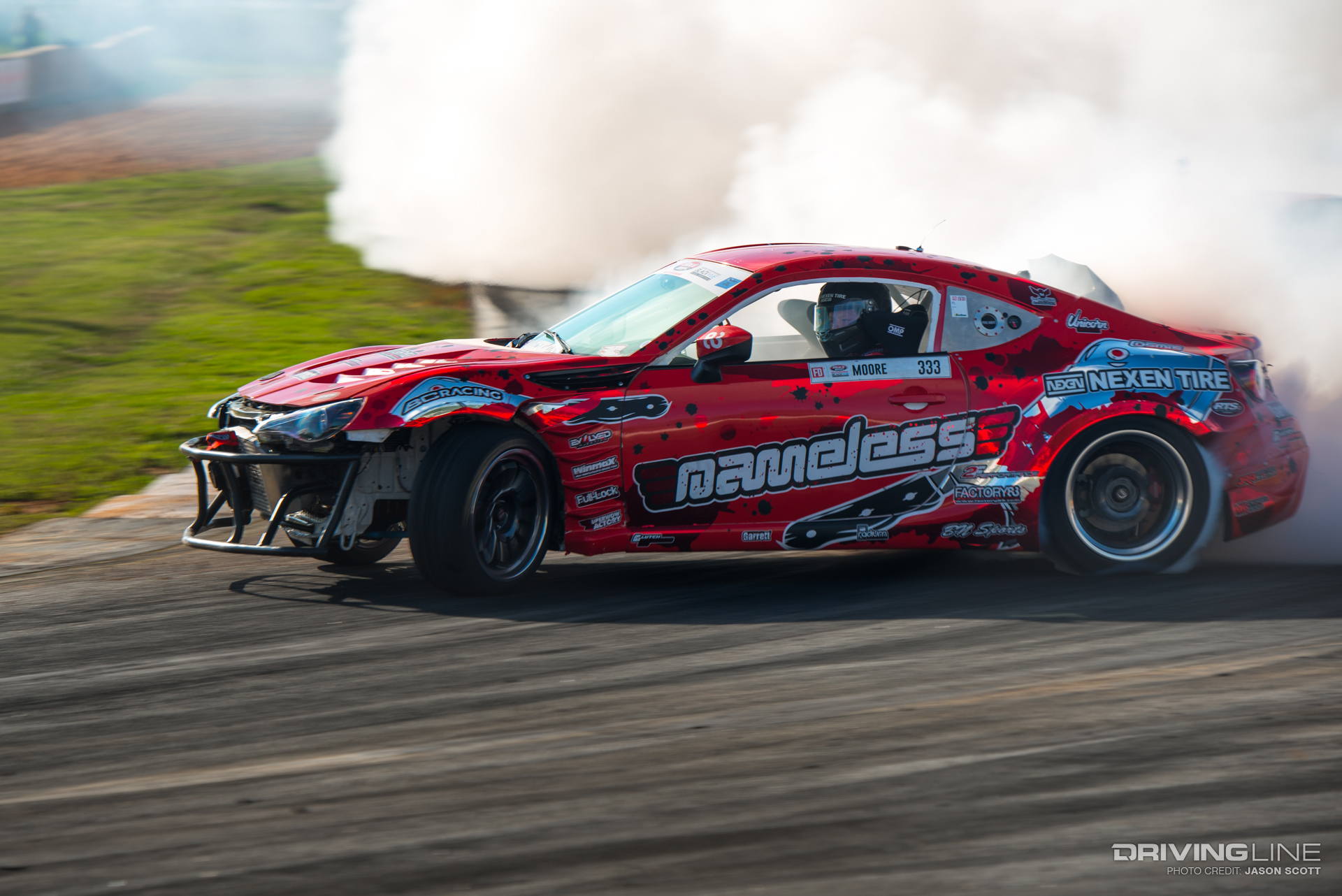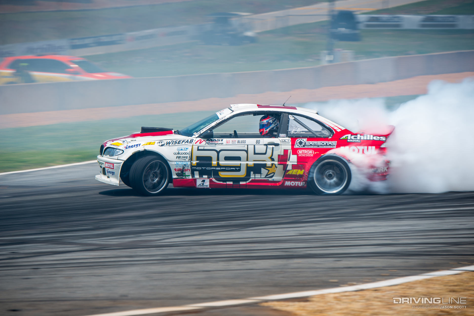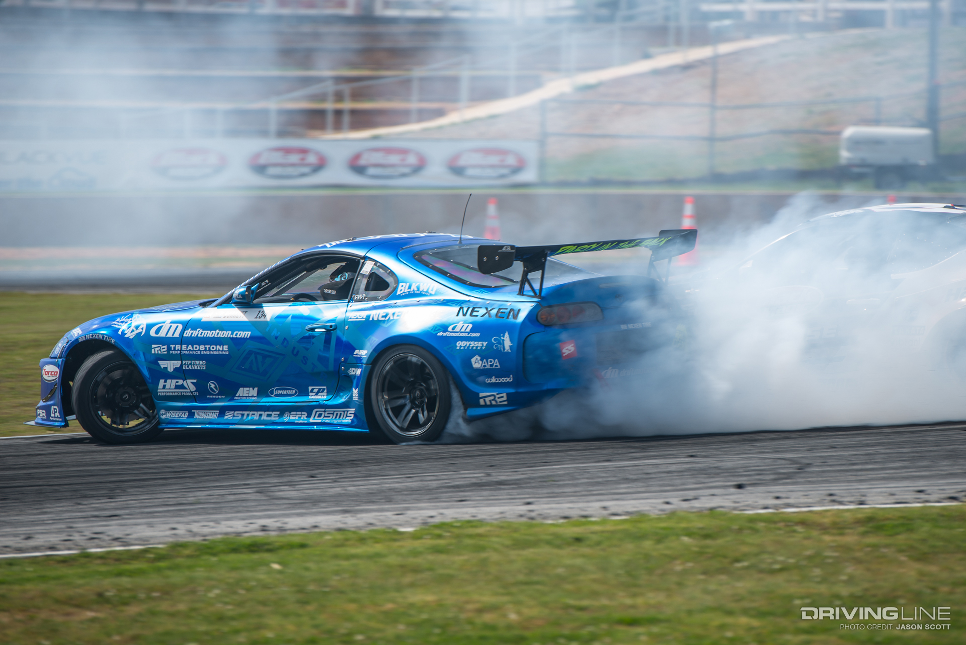 While all eyes were on Fredric Aasbo and Nitto Tire's Vaughn Gittin Jr. going into Round 3 of the Series, the Formula Drift gods had other plans for the Road Atlanta podium. Much to everyone's surprise, Orlando winner Aasbo didn't make it past the Top 32 tandems, and former Atlanta winner and No. 1 qualifier Gittin Jr. was unable to reproduce last year's results. This time, it was James Deane who ended up on top — yet again — tucking away his second event win this season after just three rounds, with fellow European drivers Dean Kearney and Kristaps Bluss on either side of him on the podium. Gittin Jr. landed in a respectable fifth place, also ranking fifth in the overall Series standings — still within reach of the championship.