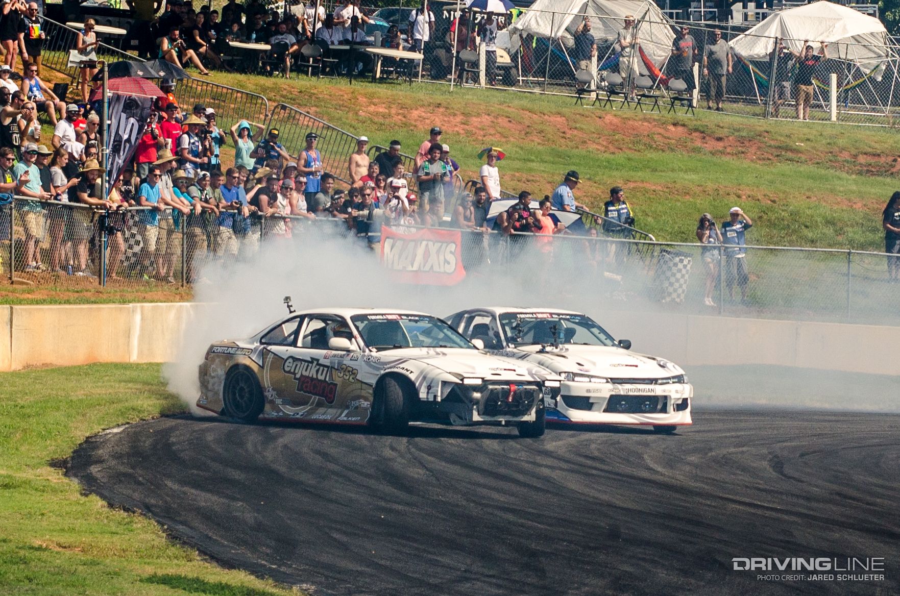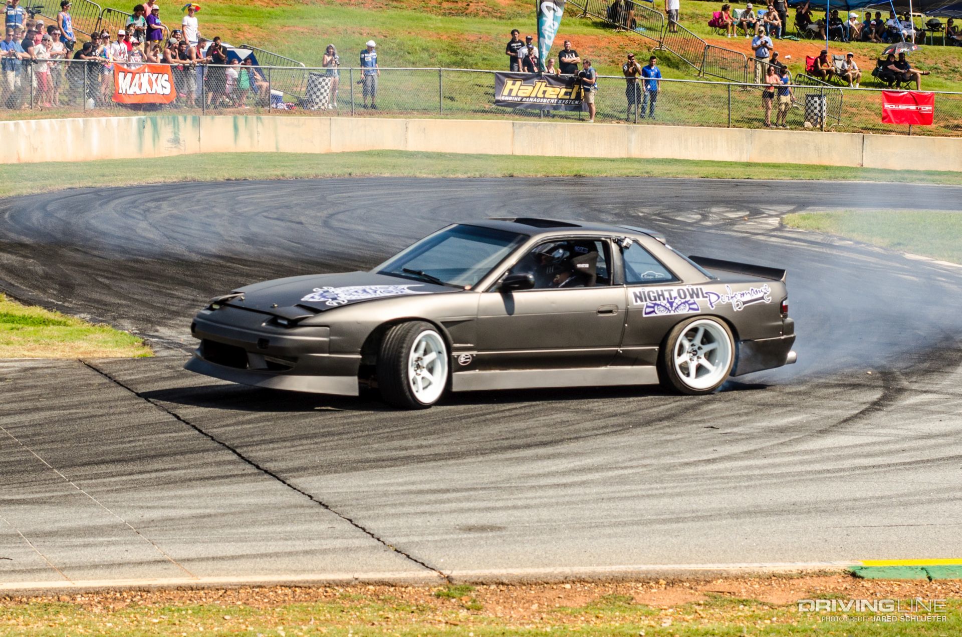 Team Risky Devil thrashed around the track with their supercharged LS Nissan 240SX S14, which consistently left the other drifters in clouds of billowing smoke.