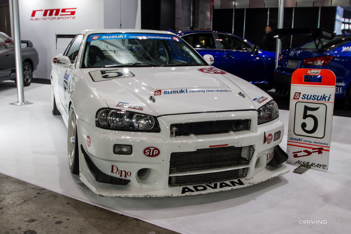 We almost didn't find this small hall of gold but when we finally did, I instantly gravitated towards the MK Motor GT-R with a quickness. Sporting a light grey/blueish hue and treated to bolted overfenders, this classic GT-R chassis sees some new school styling with wider wheels and chunky Nitto tires, and is a cool alternative to most race-prepped demo cars.